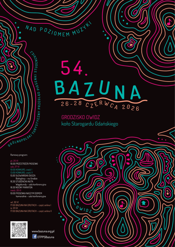 Ogólnopolski Turystyczny Przegląd Piosenki Studenckiej BAZUNA odbywa się od 1971 roku. Przegląd niezmiennie brzmi piosenką o wędrownym, akustycznym charakterze i szerokim stylistycznym polu. Konkurs promuje postaci twórców – wykonawców, autorów, dając Im zachętę do artystycznego działania. Koncerty galowe to szeroki kalejdoskop piosenki, jego walor poznawczy dla szerokiego grona odbiorców i inspiracja dla młodych twórców. Przez lata sam Przegląd, wzorem archetypu turysty, był imprezą wędrowną, przemierzając urocze zakątki Pomorza. Od roku 2024 perspektywiczną lokalizacją imprezy i jej turystycznej melodii jest starosłowiańskie Grodzisko Owidz.